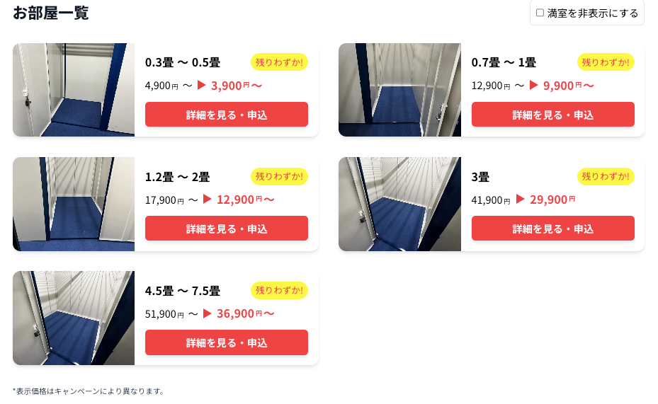 荷物以上に大きな部屋を借りてしまうことや、狭すぎて荷物が入らなかったなんていうトラブルを回避できます。