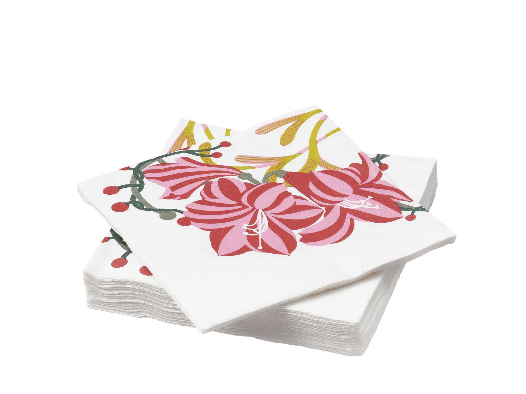 大きなトランペット形のアマリリスと、ヒヤシンスのかぐわしい香りは、スウェーデンのクリスマスに欠かせません。紙ナプキンを敷いて、テーブルコーディネートを華やかにしましょう。
