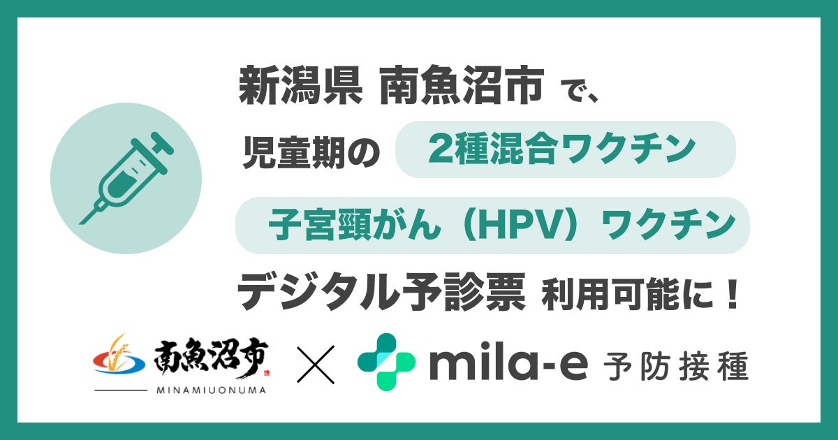 自治体向けサービスを開発する株式会社ミラボ(本社:東京都千代田区、代表取締役:谷川一也、以下「ミラボ」)が、新潟県 南魚沼市で導入している予防接種デジタル予診票サービス「mila-e(ミライー) 予防接種」において、2026年4月より対象ワクチンの範囲を拡大し、2種混合・子宮頸がん(HPV)ワクチンでのデジタル予診票の運用を開始します。