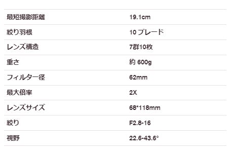明るいf/2.8の最大絞りは、さまざまな環境下での撮影に適し、スマートなプロファイルを提供しています。また、10枚羽根の絞りを採用することで、滑らかで心地よいボケ味を実現しています。