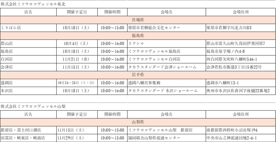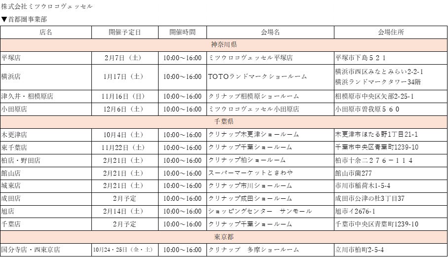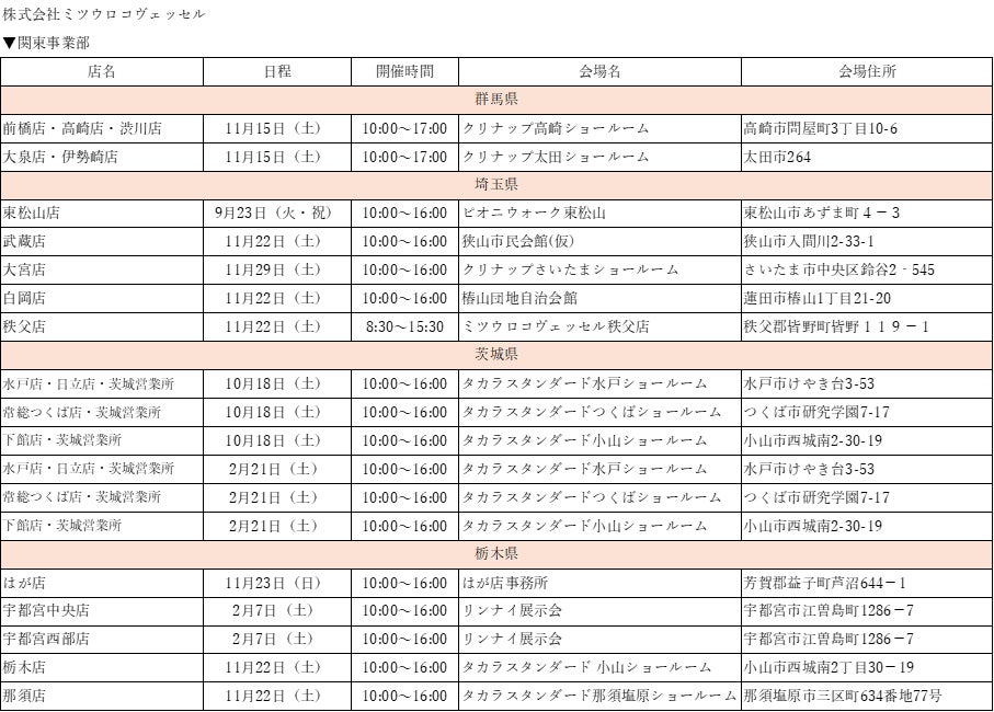 当社は、本年も最新のガス機器および住まいのリフォームに関する展示会を、各エリアにて開催いたします。