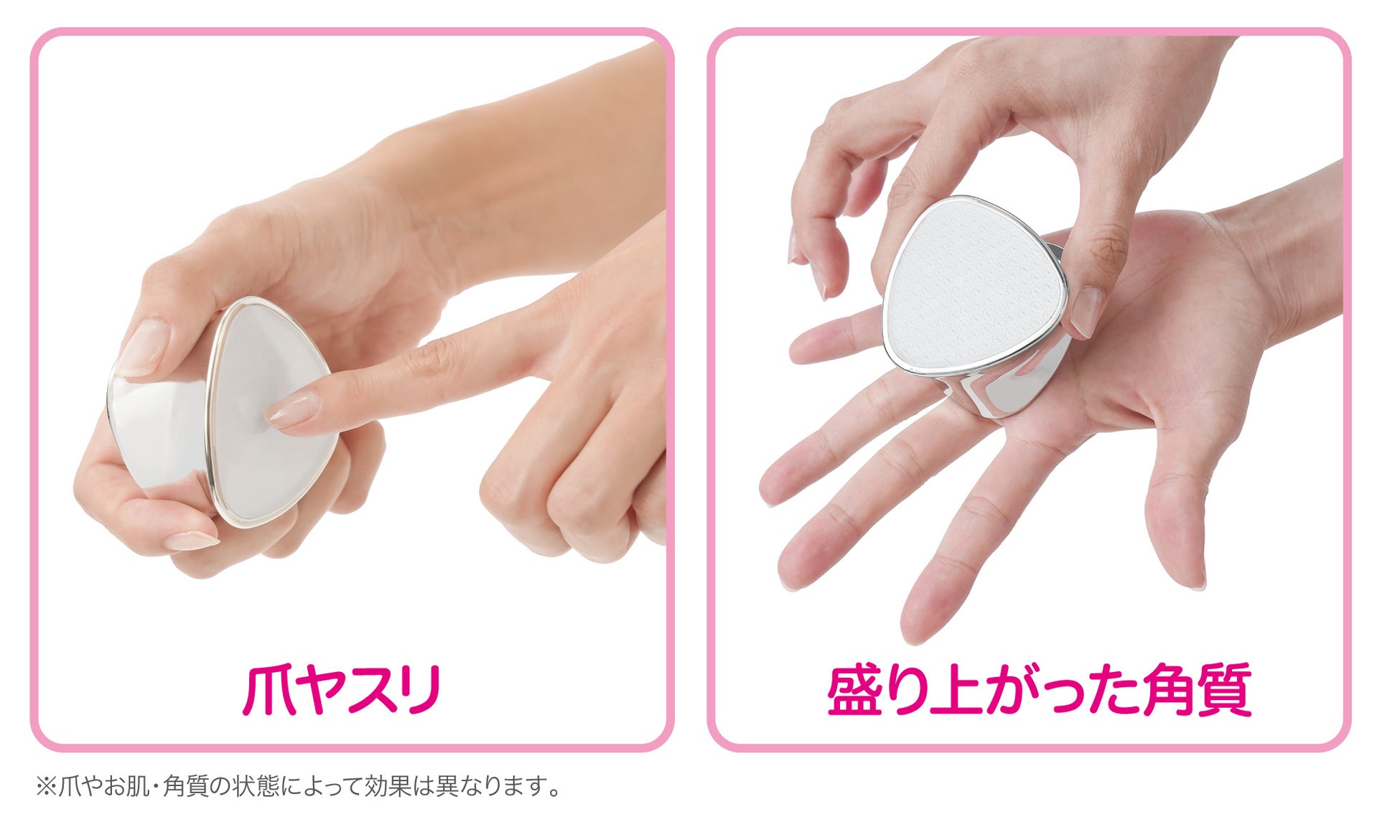 粗目の角質ケア面と細目のうぶ毛ケア・爪ヤスリ面のリバーシブル仕様でお手軽にケアできます。