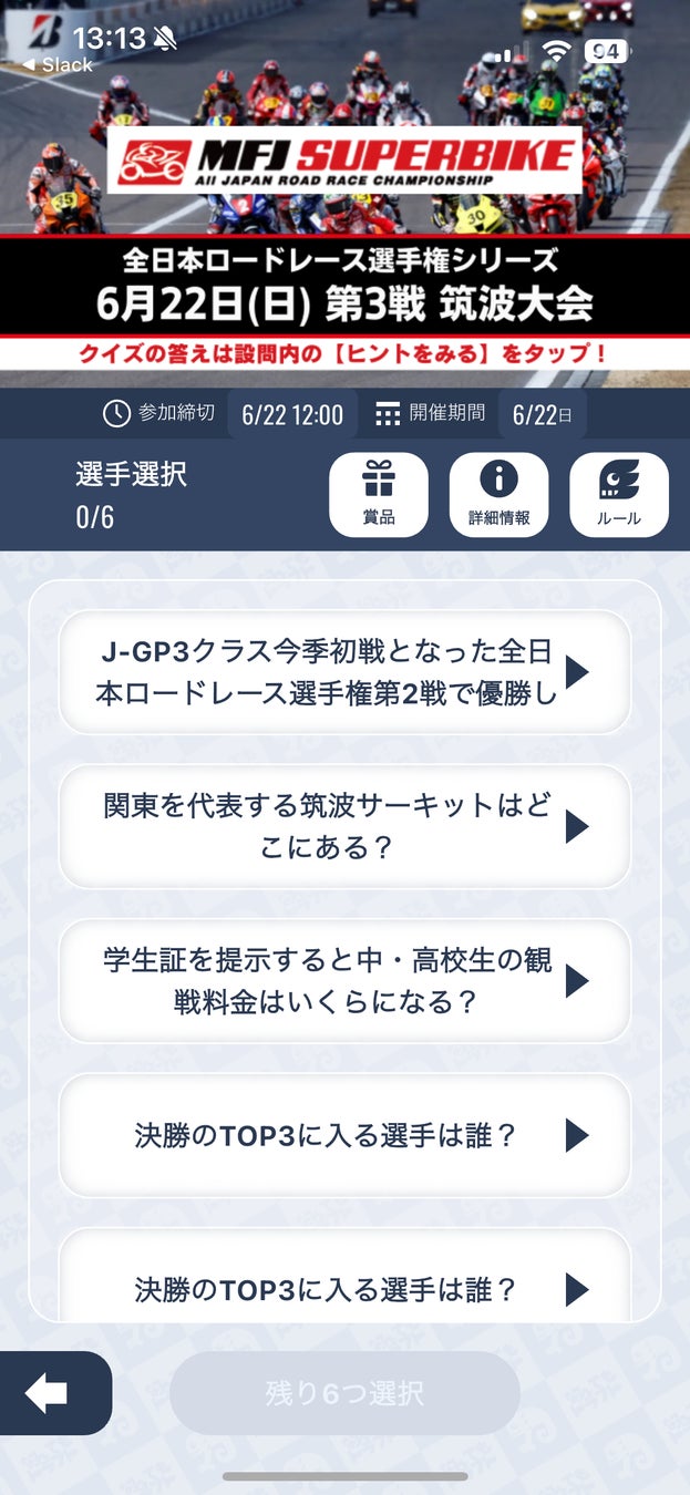 また、ロードレースについてより深く知ることができるクイズもセットで展開していて、ご好評をいただいています。