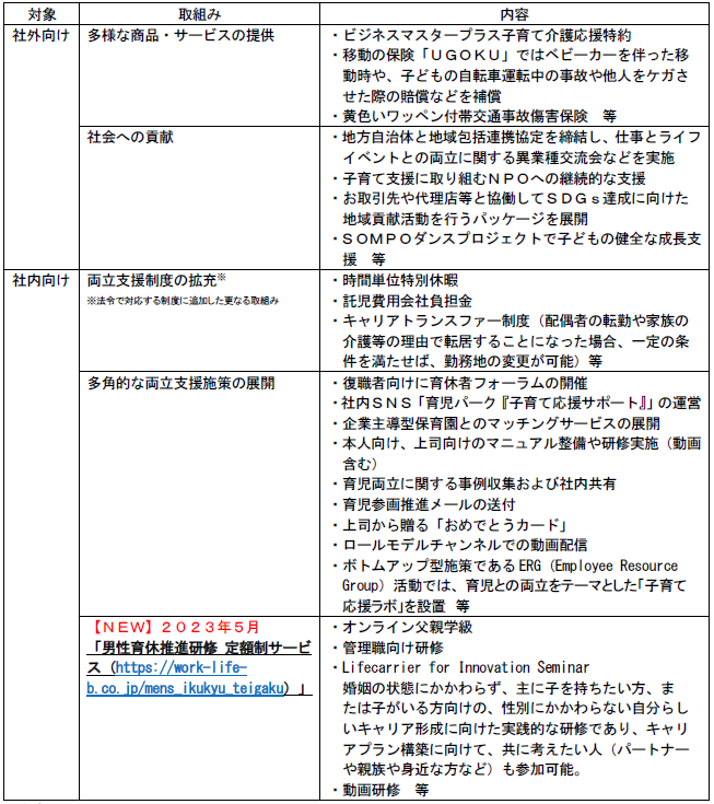 【参考】子育てしやすい社会の実現に向けた損保ジャパンの主な取組み
