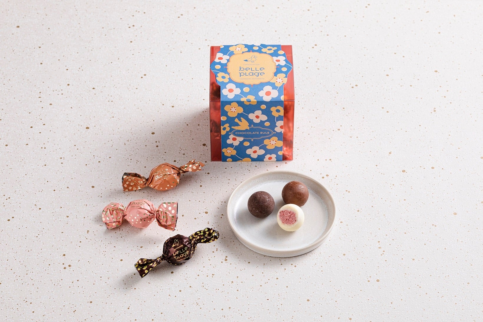 薄いチョコレートのシェルの中に、クリーミーなチョコレートを詰め込んでいます。なめらかな舌触りをお楽しみください。