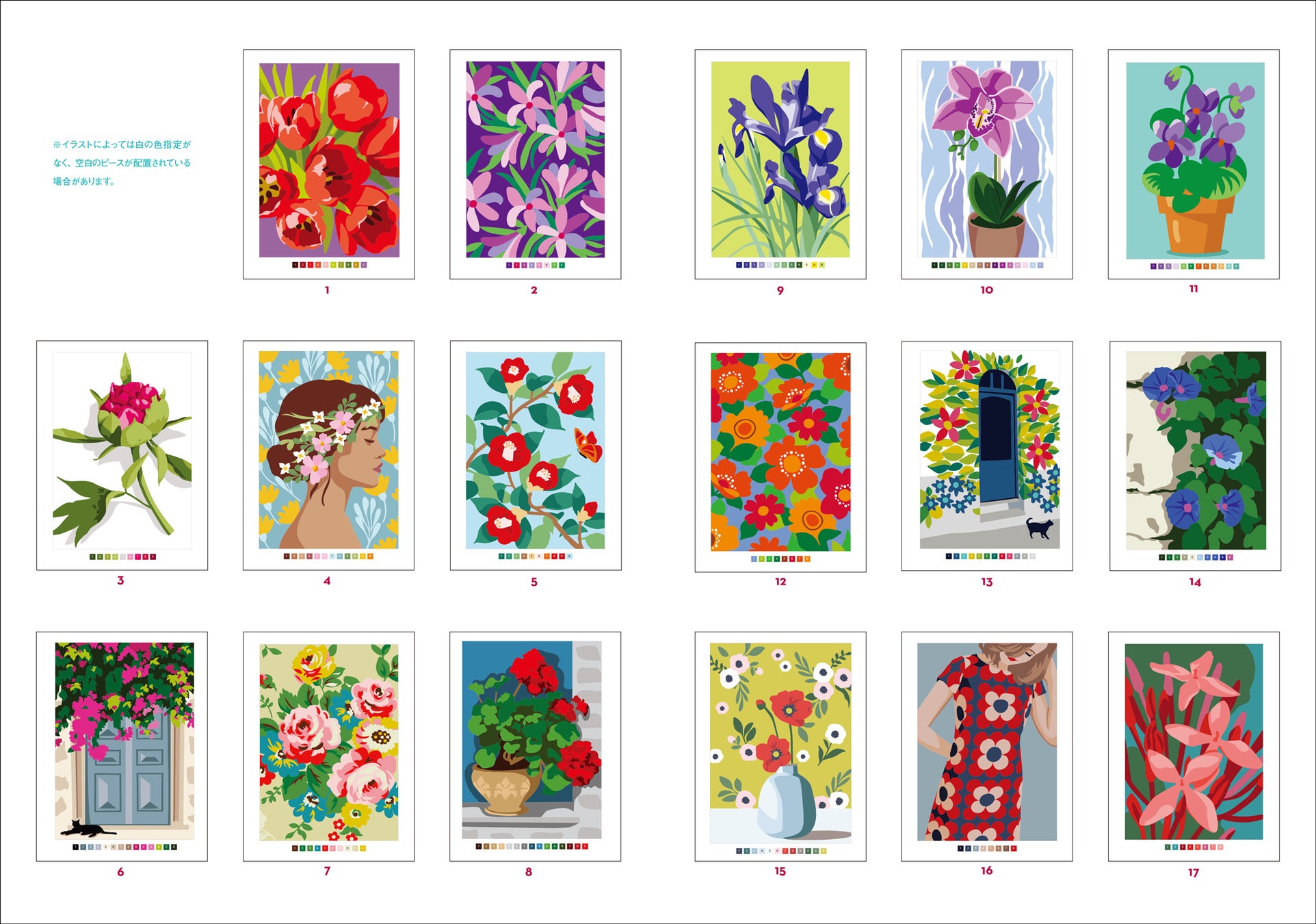 絵柄が見えないから、どんなモチーフが隠れているか完成までワクワク。秋風に揺られるコスモス、蝶を誘う可憐なバラ、艶やかに飾られたポピーやチューリップなど、四季折々の花が紙面いっぱいに咲き誇ります。充実の100点収録です。