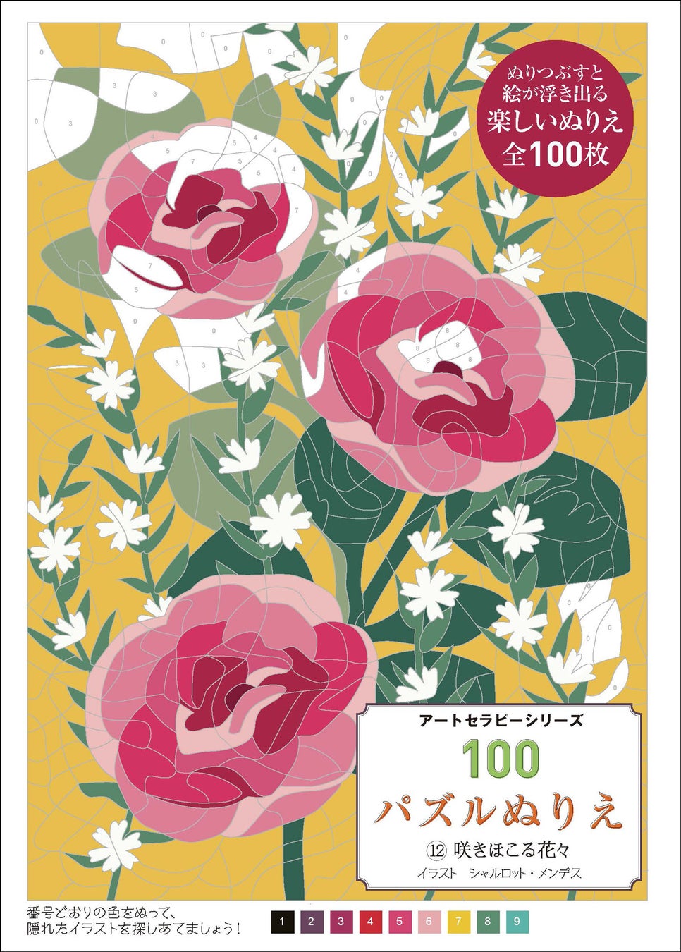 今回のテーマは『100パズルぬりえ 11.あざやかな花々』に続く、花モチーフの2作目「咲きほこる花々」です。