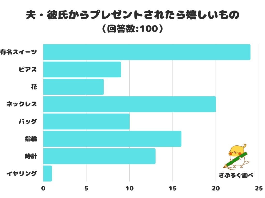 【調査レポート】夫・彼氏からプレゼントされたら嬉しいものは?1位は「有名スイーツ」!