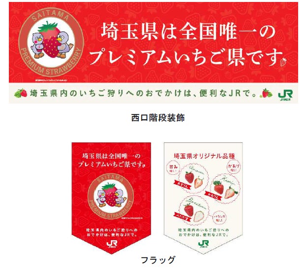 「プレミアムいちご県」の認定を記念し、JR浦和駅中央改札外の西口階段やコンコースに「プレミアムいちご県」をイメージした装飾を行います。