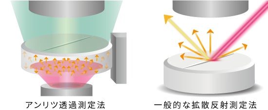 また、錠剤にNIRを当てて非破壊で検査する装置は既にありますが、反射光を分光分析する「拡散反射法」が中心で、検査領域は錠剤の表層付近に限られるため、内部の状態が確認できません。一方、本装置が採用する「透過法」は内部に光が侵入し、光の波長を測定することで、高精度で成分を判別することが可能となります。基準から外れた波長を検出することにより、成分量の異なる錠剤や、異物混入が確認できます。