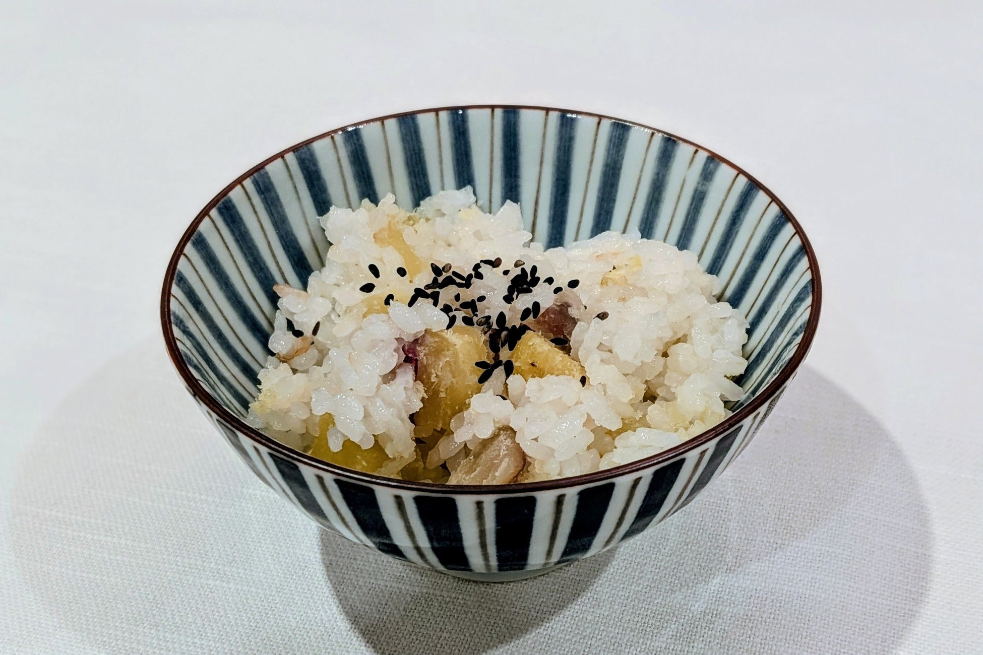 ・大粒で冷めても美味しい「ゆうだい21」は、粘りも強く炊き込みご飯にもとても相性が良く、今回はその中にさいたま市産「紅赤」を加えてふっくら炊き上げました。「紅赤」の素材そのものの味わいを感じる国際学院埼玉短期大学学生考案レシピの銘品です。