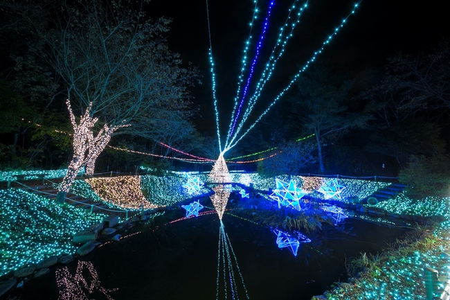 したり、光が波打つなど、400万球を超えるLEDが、相模湖の森で幻想的な輝きを放ちます。