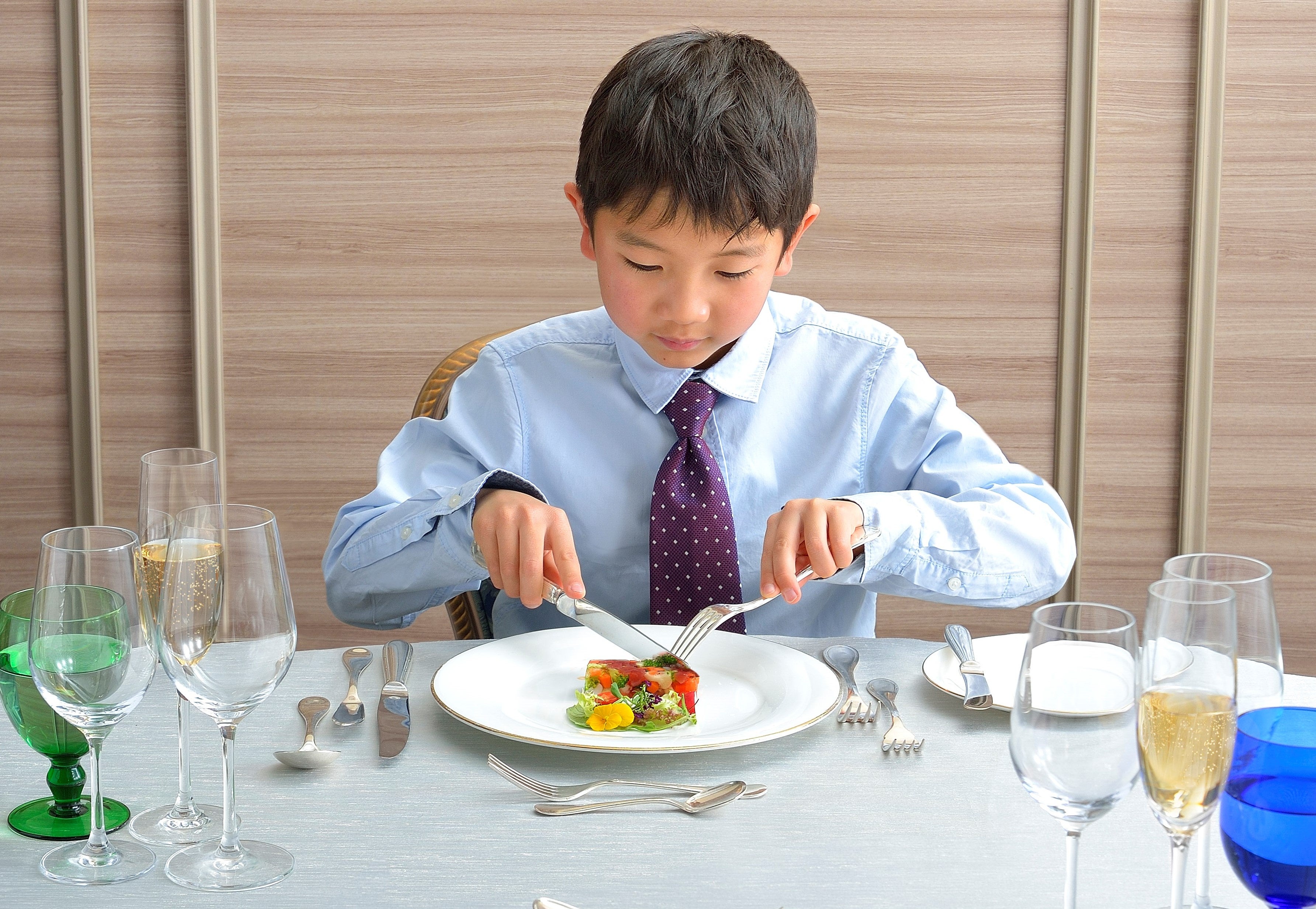 ナイフとフォークで食事するレストランや、かしこまったお席に欠かせないテーブルマナー。小学生以上のお子様を持つご家族向けにテーブルマナー教室を開催いたします。