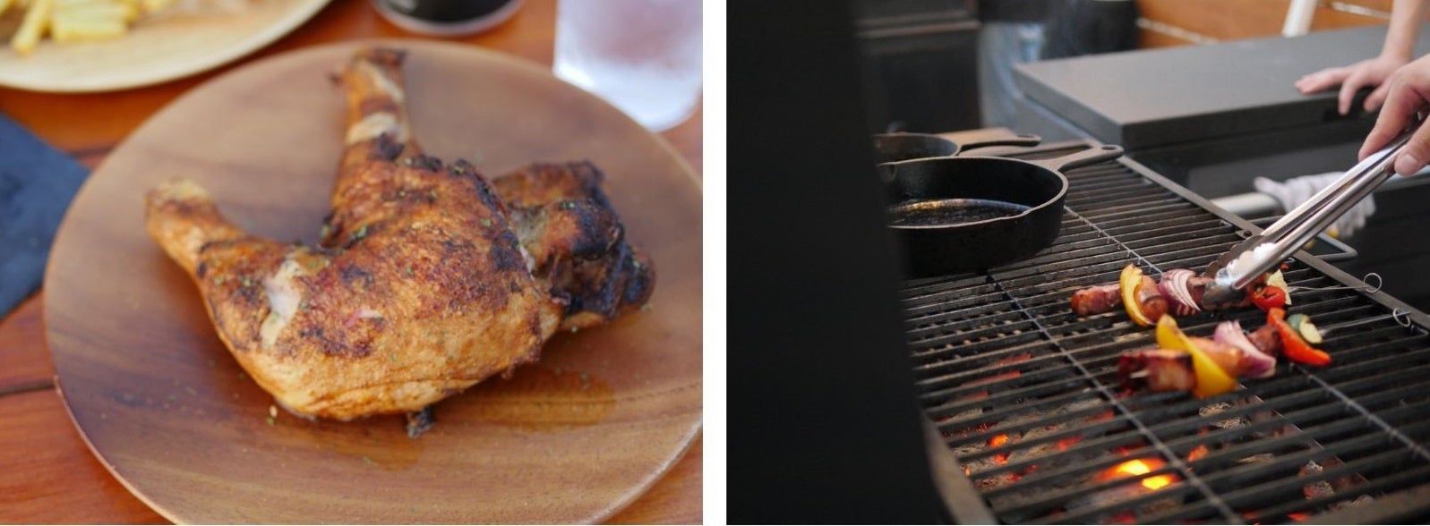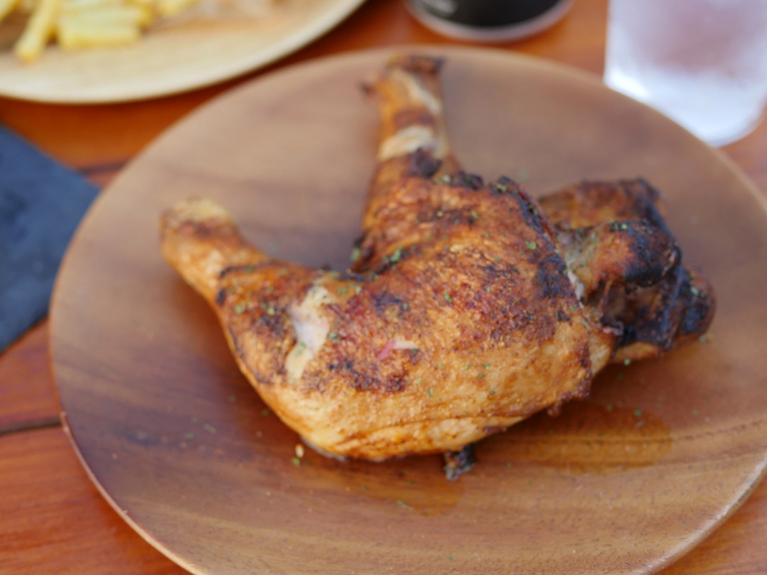 ホテル特製のたれに漬け込み、桜のチップで香り付けしたスモークチキンレッグ。テラスに設置されたBBQグリルで炙って提供いたします。(税込800円)