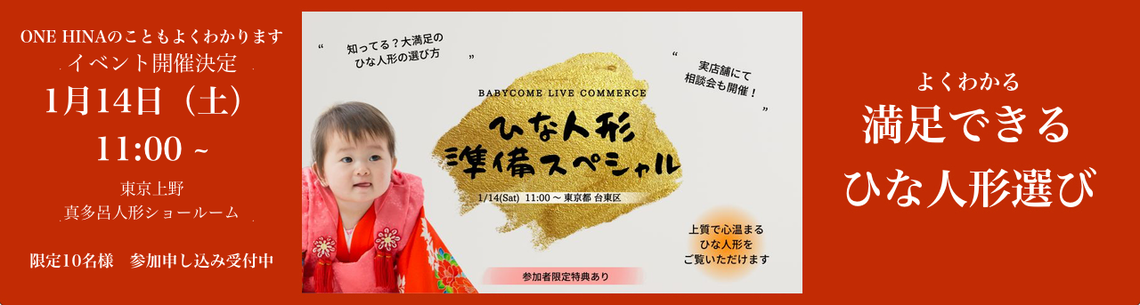 妊娠・育児のコミュニティ「ベビカム」を運営するベビカム株式会社(本社所在地:東京都千代⽥区、代表取締役:安⻄正育)と「真多呂⼈形」は、コラボプロジェクトとして、世界に一つだけの雛人形「ONE HINA」を商品開発しました。50名様限定で、1月31日まで申し込みを受け付けいたします。商品料金は、165,000円(税込)から。