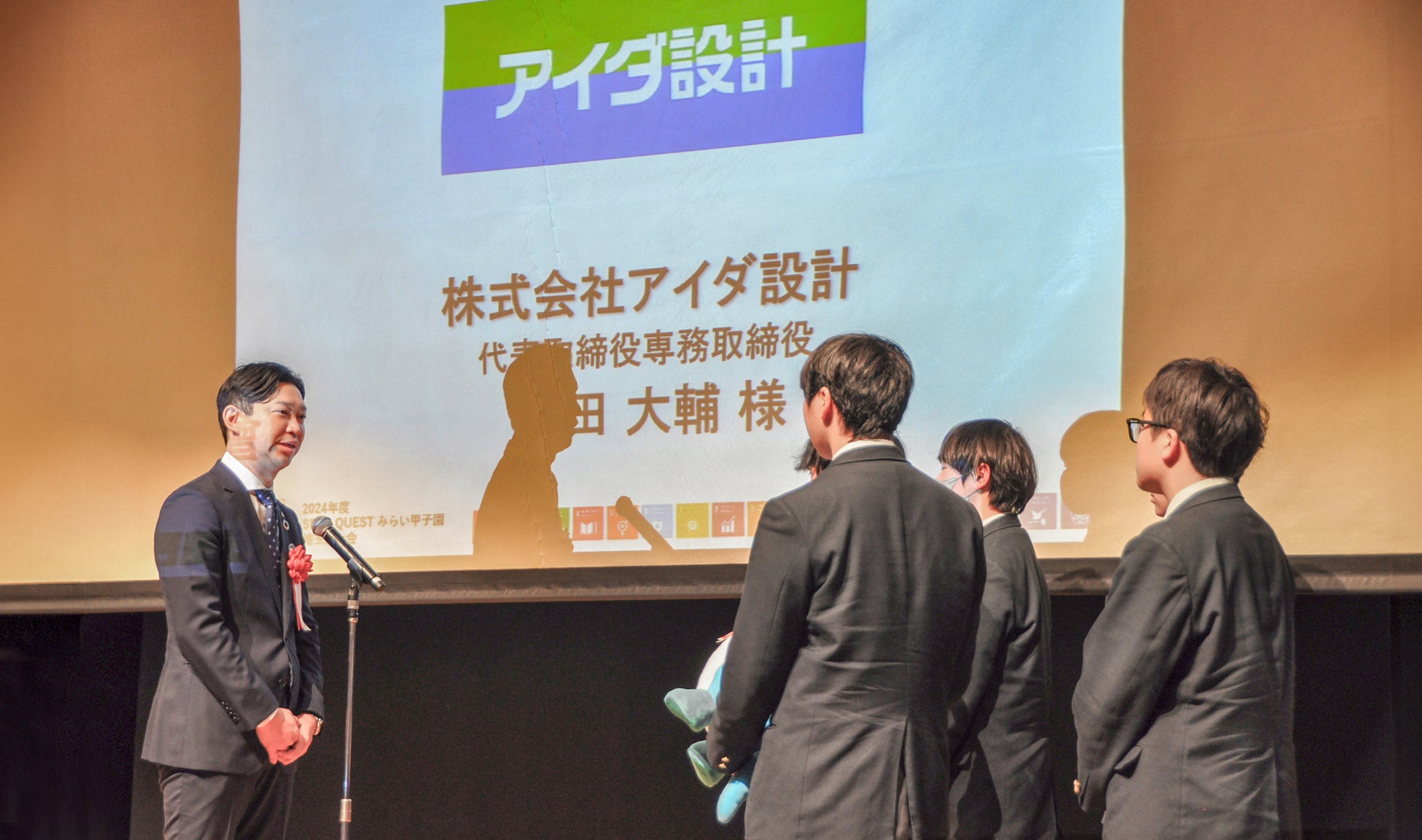 この度、株式会社アイダ設計(本社:埼玉県上尾市、代表取締役社長:會田 貞光)は、全国の高校生が社会問題解決について考えアイデアを競う「SDGs QUEST みらい甲子園」において、2024年度埼玉県大会のゴールドパートナーとして協賛いたしました。3月9日(日)に開催された埼玉県大会ファイナルセレモニーにて、アイダ設計から企業賞を贈呈いたしました。