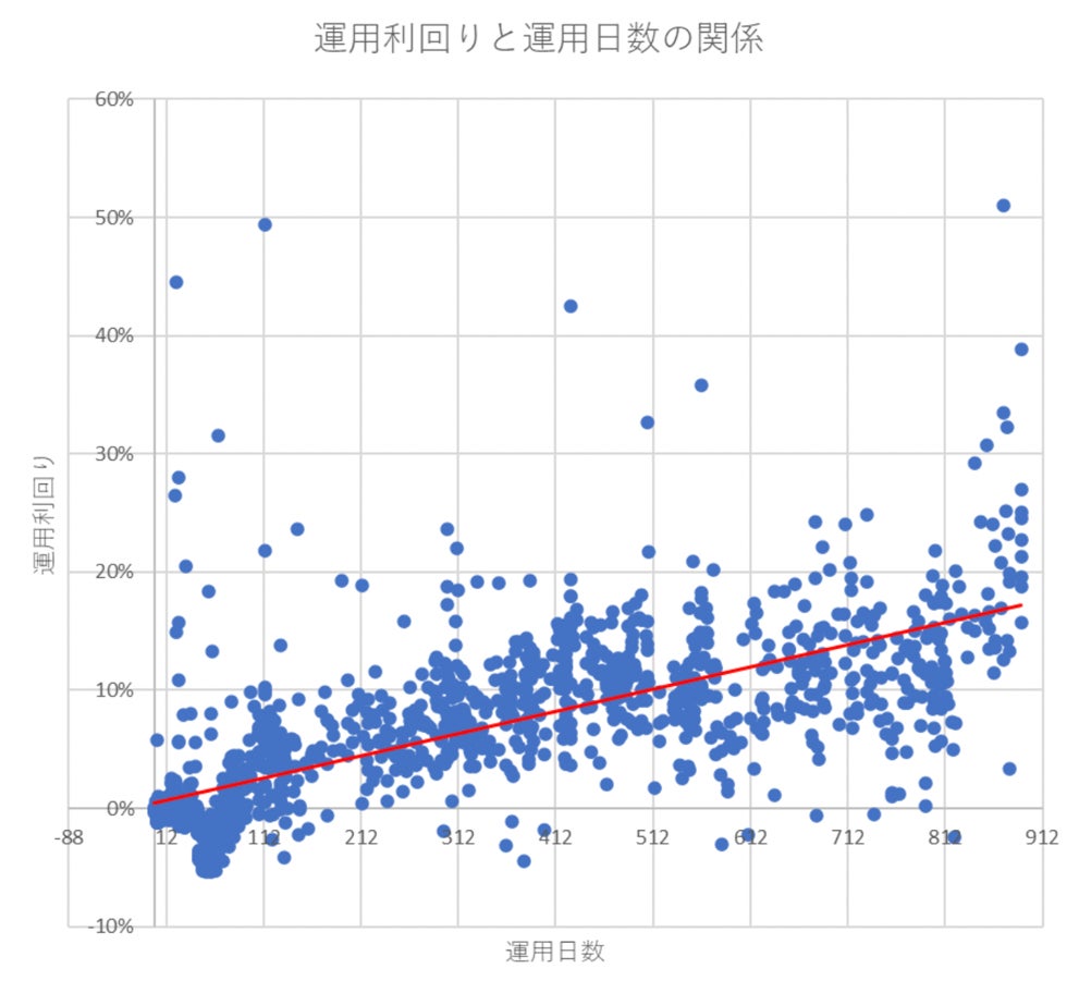 運用日数が長いお客様ほど、運用利回りが高くなっていることが見て取れます。