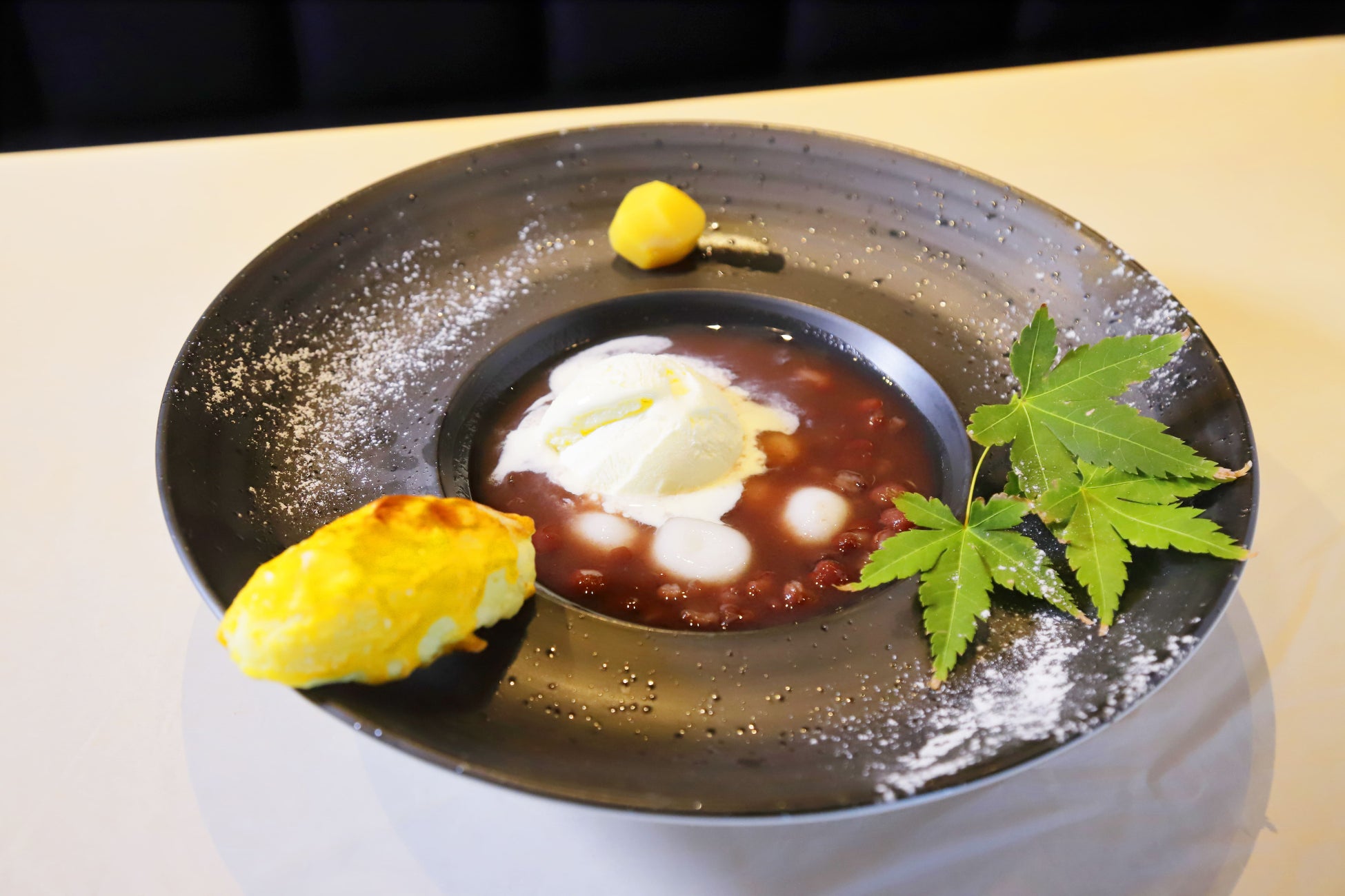 スイートポテトと栗の白玉ぜんざいバニラアイス添え(1,300円)