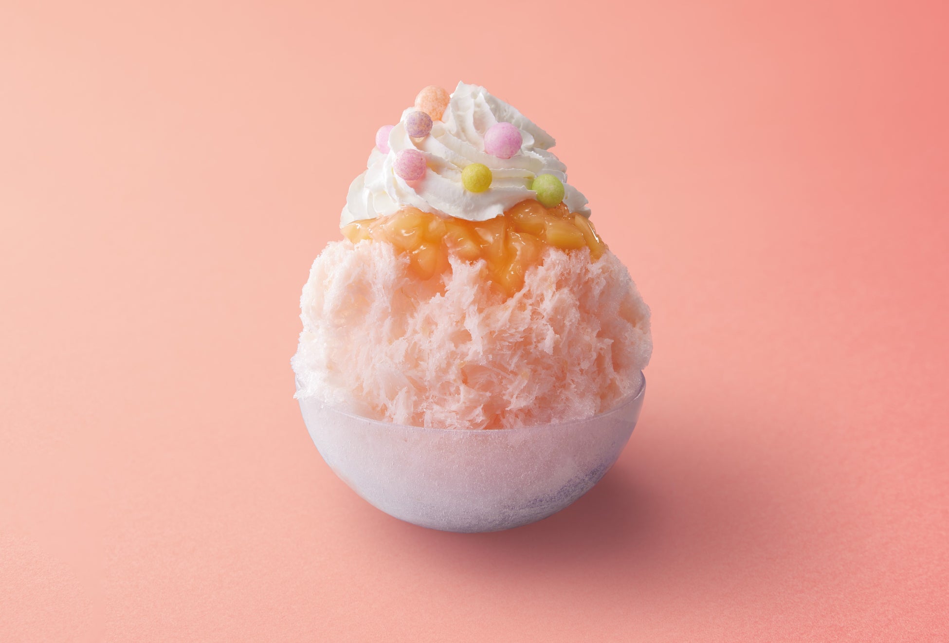 昨年ご好評いただいた「天然水の削り氷 桃と信州高原みるく」を今年も販売いたします。奥行きのある味わいの秘密は2種の桃ソース。白桃の果肉入りのソースと「信州高原みるく」をブレンドしたまろやかな味わいの桃ソースをかけて提供します。別添えの「信州高原みるく」とカラフルなおいり(※)をお好みでトッピングしてお召し上がりください。「信州高原みるく」は、長野県信州駒ケ根高原産の牛乳を使ったミルクシロップです。