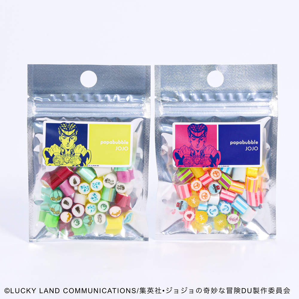 ジョジョの特徴的なロゴや世界観を想起させるようなモチーフや擬音をデザインとして起用したキャンディ。パパブブレの職人技によりその世界観を忠実に再現しています。オリジナルのパッケージもグレートなキャンディセットです。