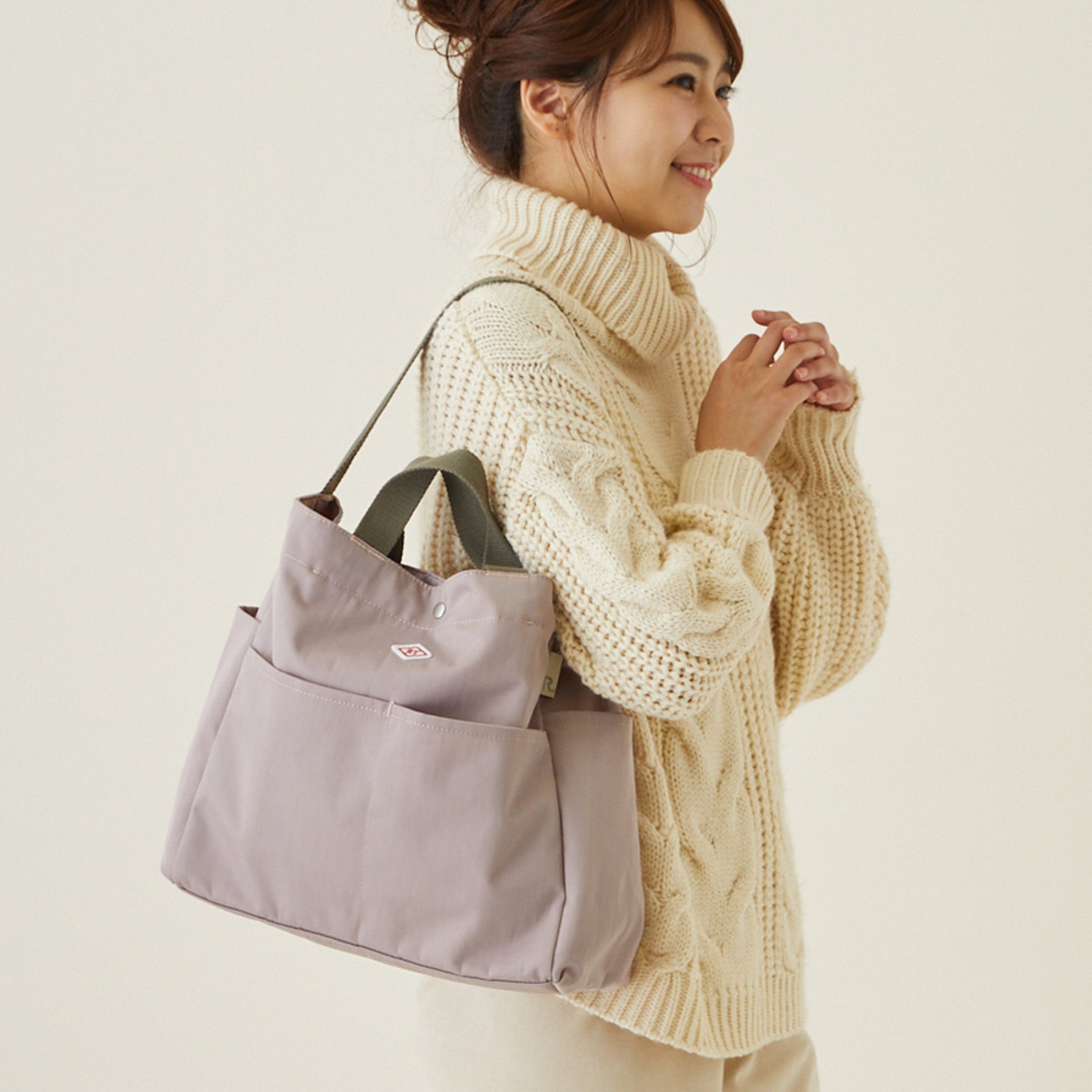 NA.トール.2way.ニンブル-A 3,960円(1359 01 CAMEL、02 LAVENDER、03 CHARCOAL)サイズ:W32×H32×D13cm 持ち手:26cm ショルダー 50cm 素材:表地/ナイロン 持ち手/ポリエステル ドットボタン ポケット:外側4箇所、内側1箇所 ※発売中