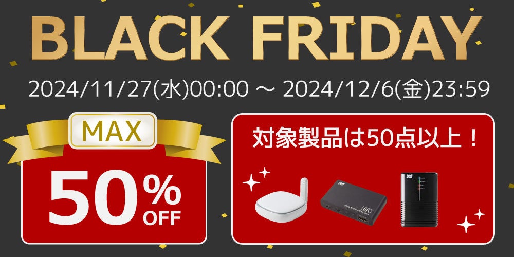 ラトックシステム株式会社(本社:大阪市西区、代表取締役:近藤 正和、以下ラトックシステム)は、「Amazonブラックフライデー」において、セール対象製品を最大50%OFFの特別価格で販売いたします。