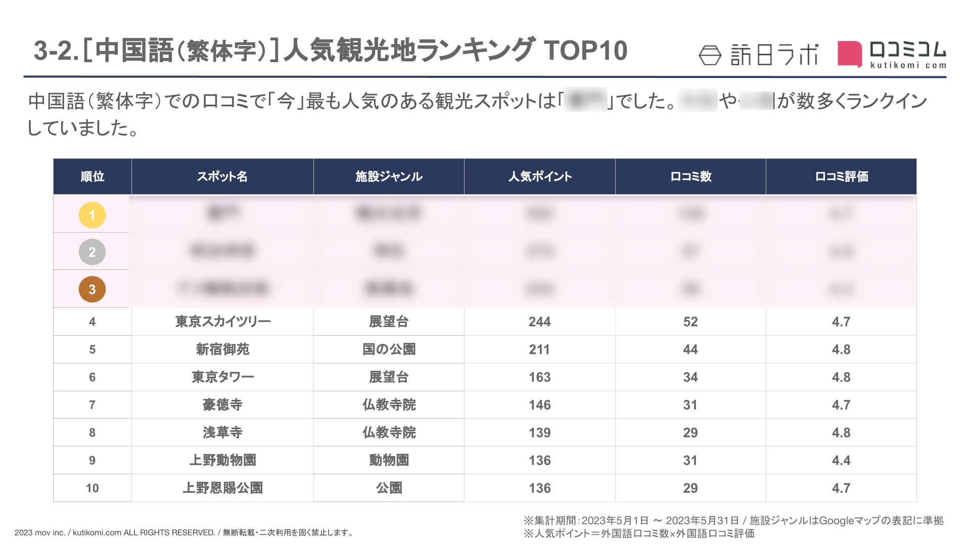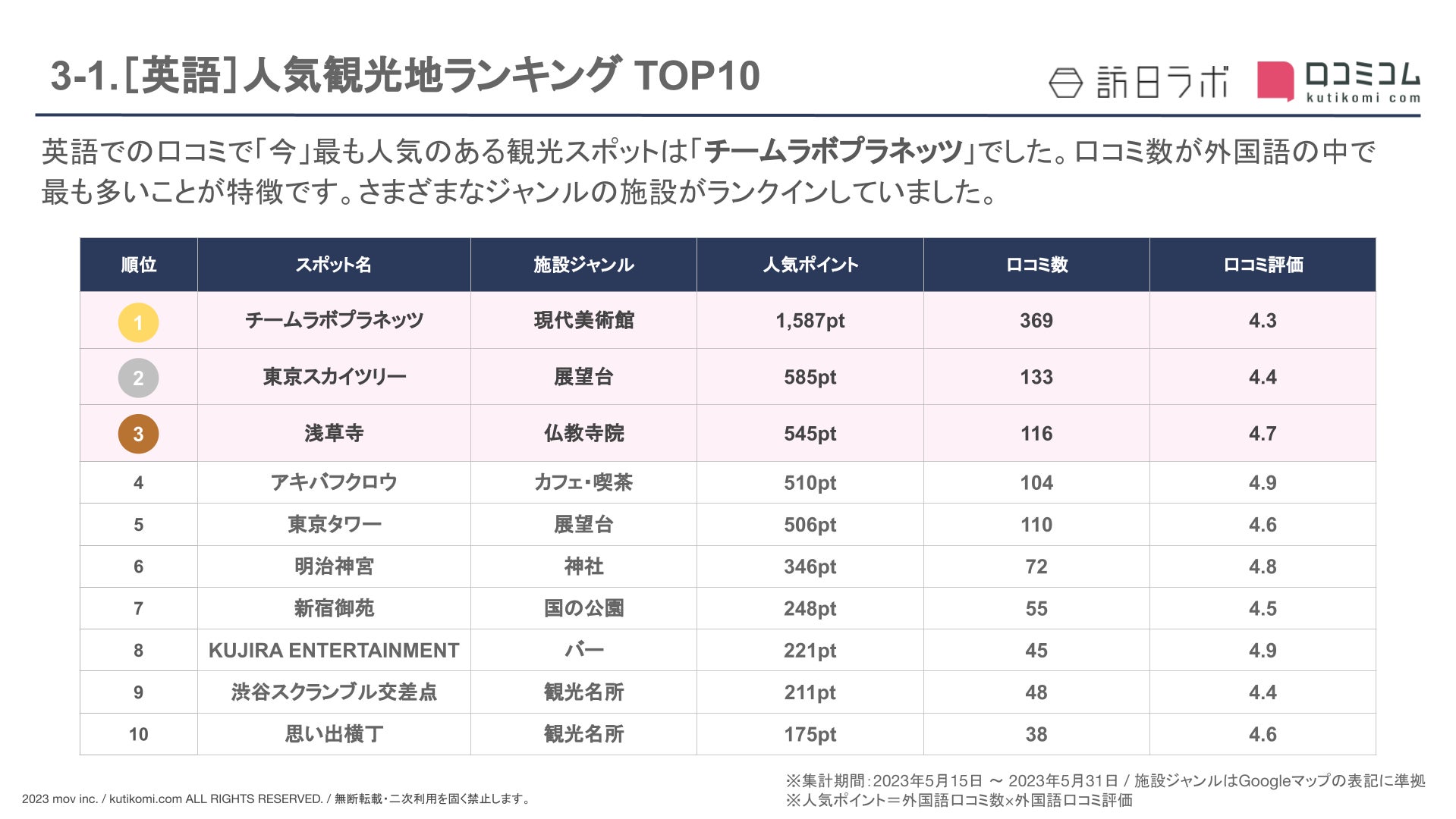 ・外国語口コミ数&口コミ率 TOP10 のスポット