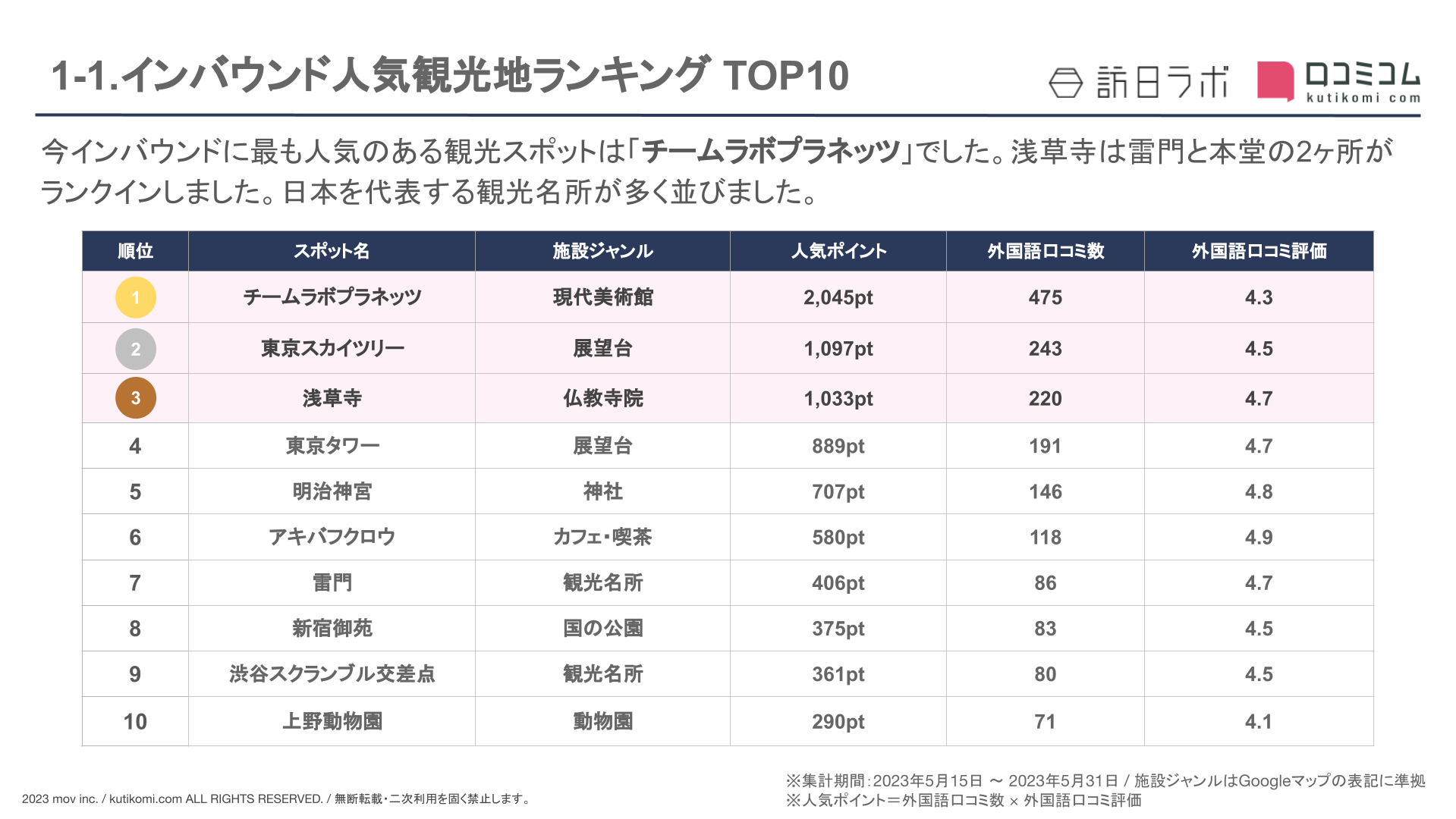 【独自調査】インバウンド人気観光地ランキング東京編:コロナ後 最新の訪日客の支持を集めたスポットTOP10を発表 #インバウンドMEO