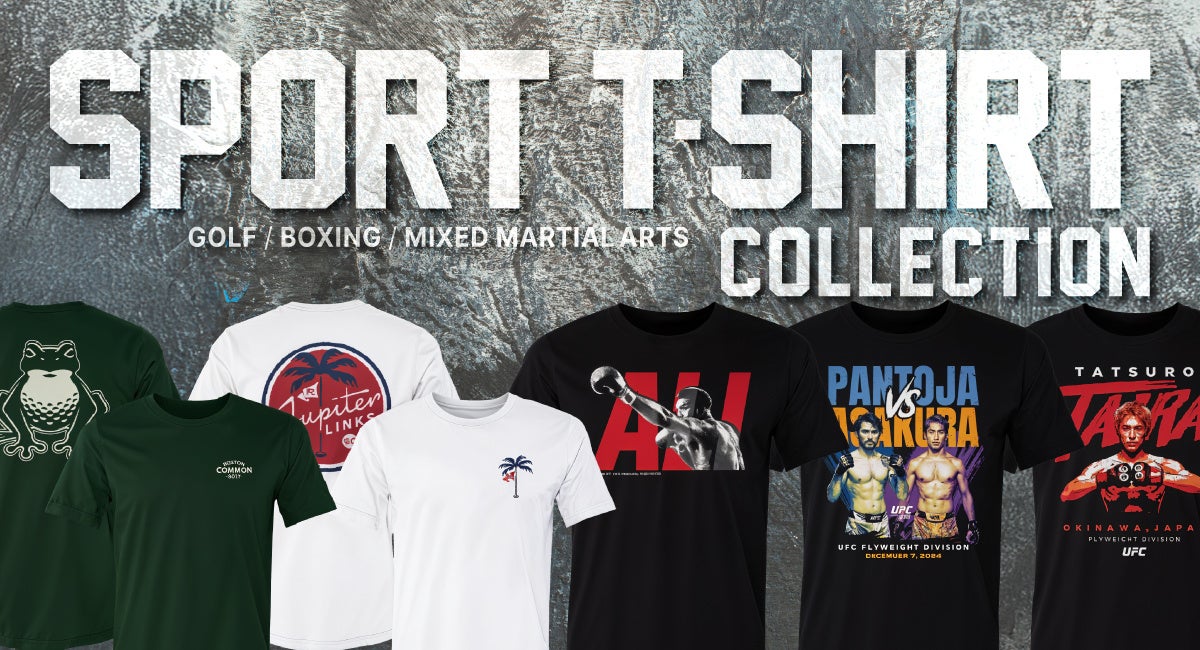 ゴルフ、総合格闘技、ボクシングの3競技の魅力が詰まったTシャツ5種類が「Space Age Online Shop(Space Age公式ショッピングサイト)」にてお買い求めいただけます!