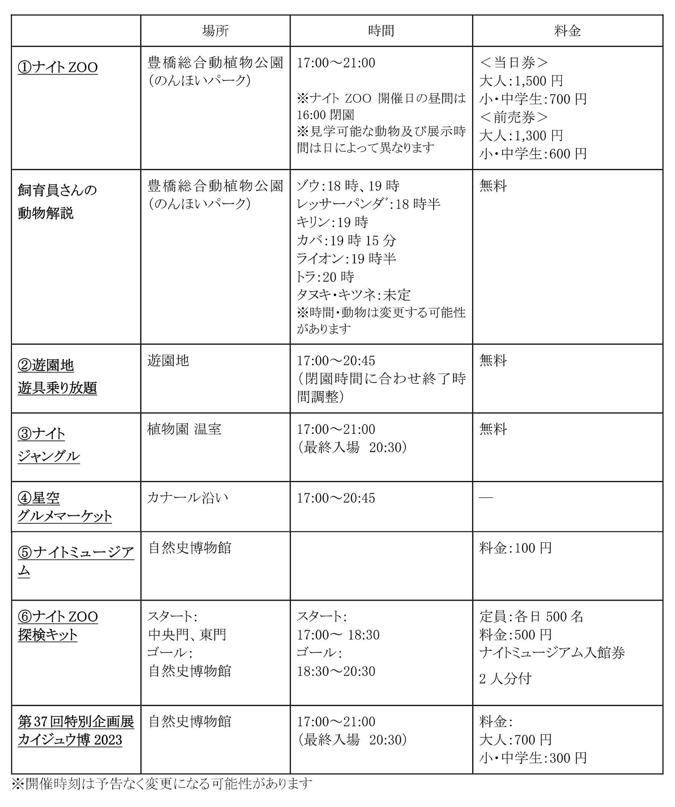 詳細、最新の情報はのんほいパーク「ナイトZOO」特設サイトでご確認ください。