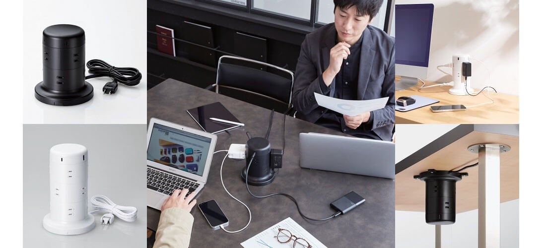 電源周りがスッキリしてごちゃつかない!USBポート付きのタワー型タップ、USB Power Delivery搭載モデルを新発売!