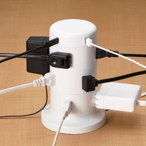 - さまざまな使用シーンに対応する機能性の高いタワー型電源タップ