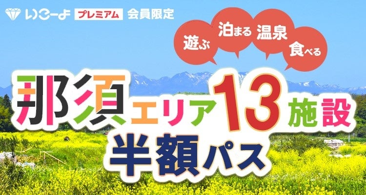 - 内容:宿泊をはじめ、様々な遊びや体験など、春夏の那須エリアを親子で楽しむ事ができる、プレミアム会員限定(毎月先着300名、計1200名)の、とてもお得な「那須エリア半額パス」企画です。