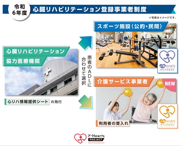 神奈川県横浜市が推進する心臓リハビリテーション事業(Y-Hearts Project)に協力するため、横浜市内スポーツクラブ5施設、介護リハビリ施設11施設、計16施設を心臓リハビリテーション事業者に登録しました。