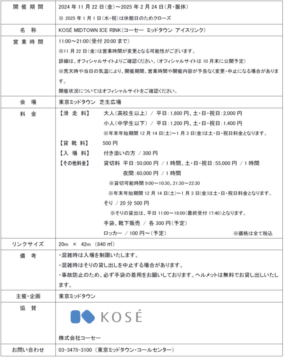 KOSÉ MIDTOWN ICE RINK概要