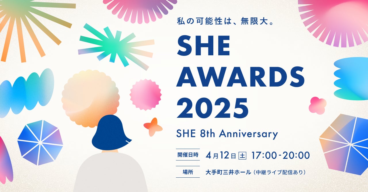 学ぶから働くまでを支援する女性向けキャリアスクール「SHElikes(シーライクス)」を運営するSHE株式会社(所在地:東京都港区、代表取締役CEO/CCO:福田恵里、以下SHE)は、4月12日(土)に開催する、自分らしい生き方への挑戦と変化を讃える年に1度の祭典「SHE AWARDS 2025」の特設サイト(https://shelikes.jp/landing_pages/sheawards2025/)を、1月30日にオープンしました。