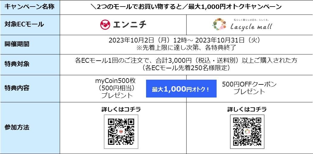 ~2つのECモールでお買い物すると、最大1,000円オトク!~