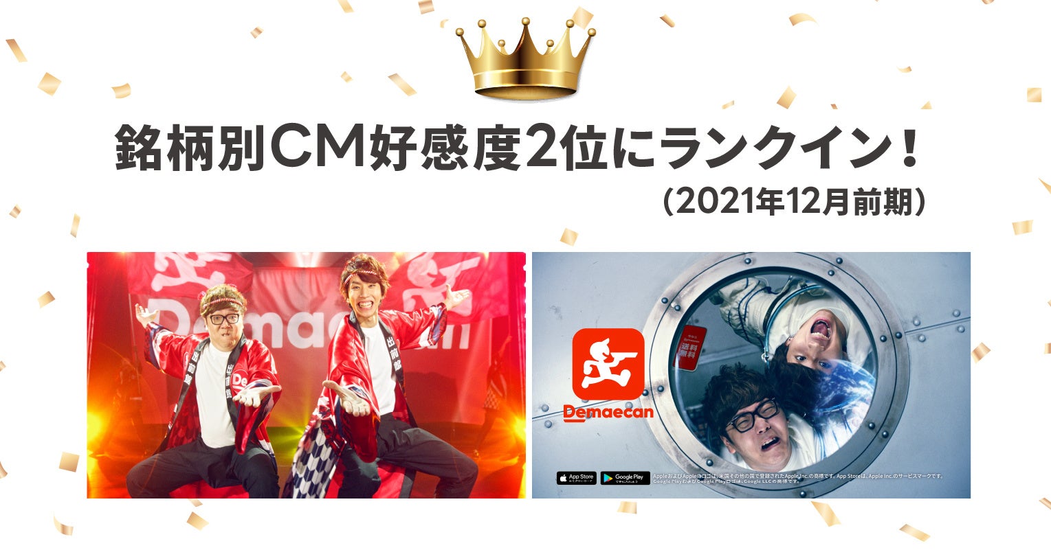 今回ランキングに入った新CMは、2022年1月31日(月)まで開催される一都三県「送料無料」を訴求するCMで、大人気動画クリエイターのHIKAKINとはじめしゃちょーが出演しています。幕や照明などブランドカラーの赤を基調としたステージに立った法被姿の二人が、ソーラン節のリズムに乗せてポーズを決めるシーンに始まり、「♪出前館 出前館」「♪送料無料」と声を上げながら配達の動きや“0(ゼロ)”をモチーフにしたコミカルなダンスを披露したものになっており、関東地区限定で放映されています。