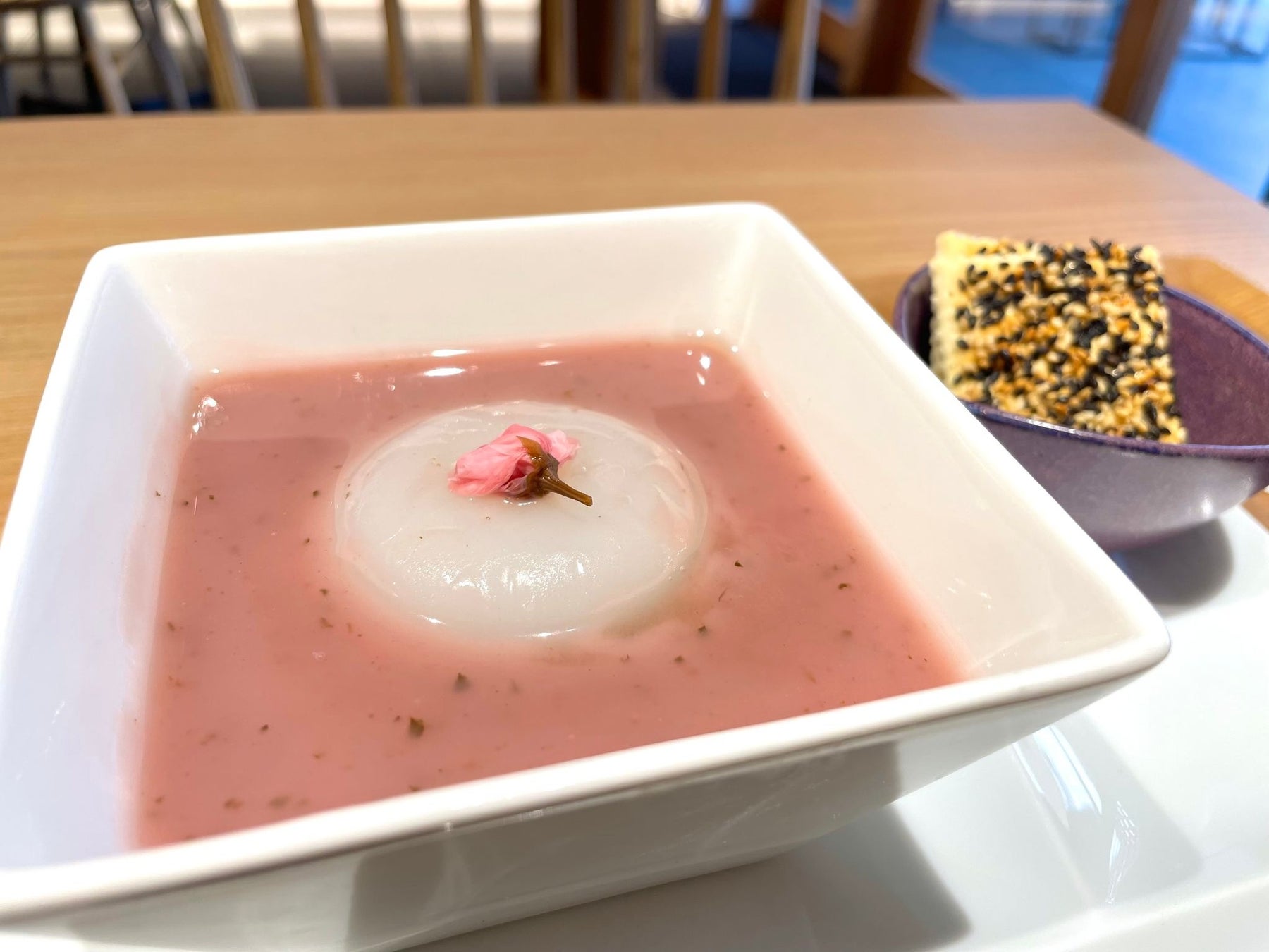 株式会社船橋屋(所在地:東京都江東区、代表取締役:神山恭子)は、2024年3月13日(水)よりBE:SIDE表参道店にて「さくらみずくずもち」を提供いたします。底に自家製小豆を敷き、くず餅乳酸菌入りの桜餡にみずくずもちを浮かべました。