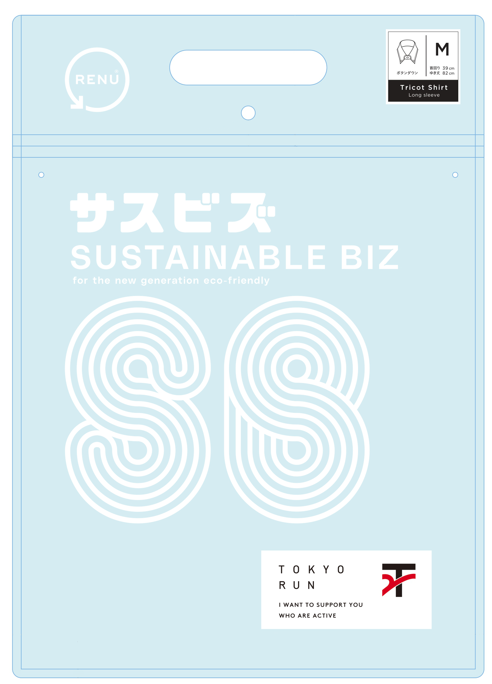 このたび展開を開始する「TOKYO RUN × SUSTAINABLE BIZ」は、商品だけではなく、商品販売にまつわる資材の“パッケージ”、“ハンガー”、“什器”もサステナブルを意識した取り組みです。販売する商品については、「TOKYO RUN」ブランドの機能性・デザイン性を活かしつつ、年代問わず、気軽にサステナブルに取り組めることを目的としたお手頃価格のビジネスウェアを展開いたします。