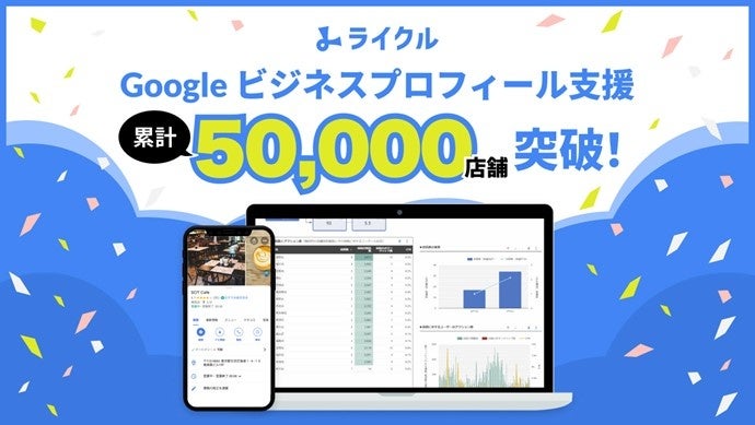 ソウルドアウト株式会社(本社:東京都文京区 代表取締役社長CEO兼CCO:荒波 修)の連結子会社であるSO Technologies株式会社(本社:東京都文京区 代表取締役:山家 秀一、以下 当社)が提供するGoogle ビジネスプロフィール(旧:Google マイビジネス)を活用した店舗集客支援サービス「ライクル」の累計運用アカウント数が50,000店舗(※1)を突破したことをお知らせします。