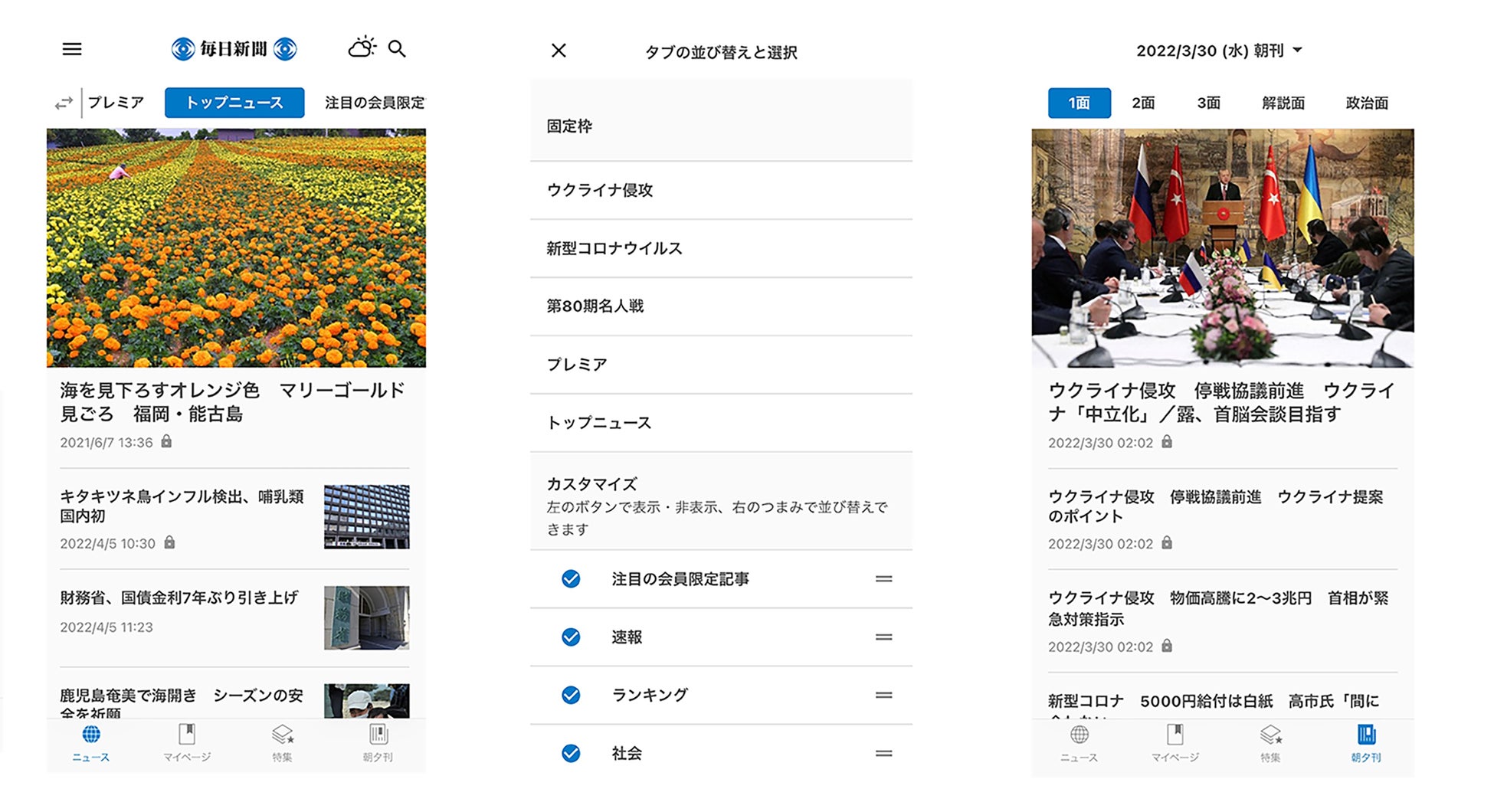 株式会社毎日新聞社(東京都千代田区、代表取締役社長:松木健)は2022年4月、毎日新聞デジタルのニュースアプリをリニューアルしました。ジャンルや画面のカスタマイズ、メモなどの新機能の追加と改良によって、使いやすさだけでなく記事との出合いやすさも向上させました。新しくなった毎日新聞ニュースアプリをどうぞご利用ください。