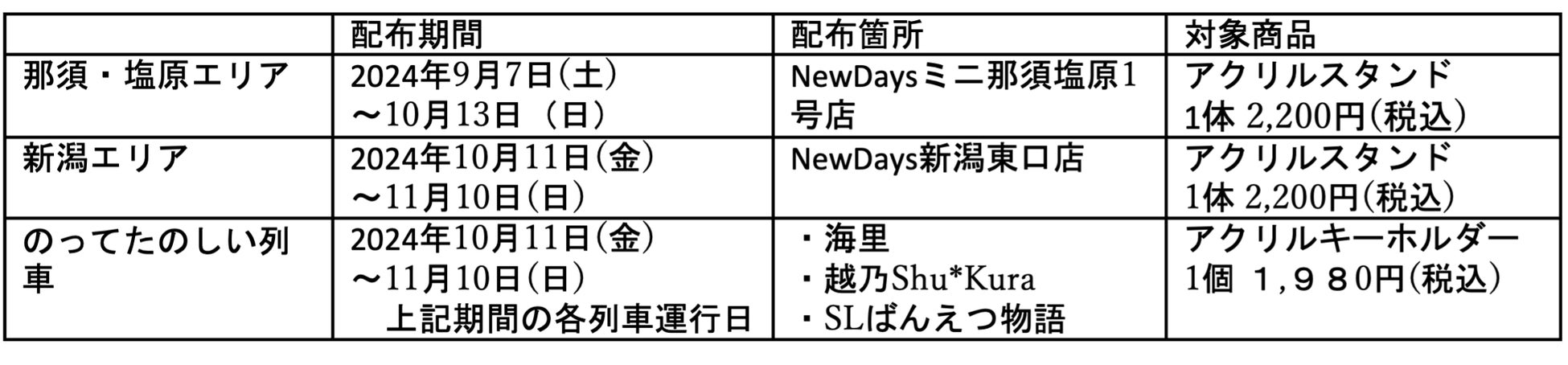※アクリルスタンド・アクリルキーホルダーの詳しい情報は、以下のプレスリリースをご確認ください。https://www.jreast.co.jp/press/2024/omiya/20240902_o01.pdf