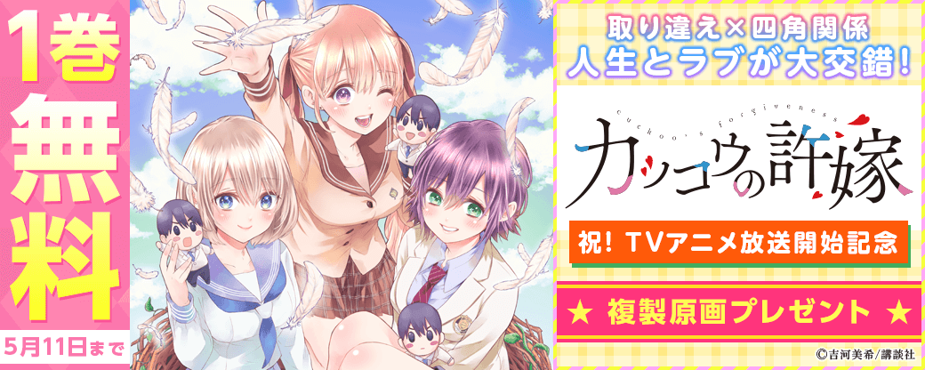 2022年4月23日よりTVアニメ放送開始の「カッコウの許嫁」の作者・吉河美希先生の直筆為書き入り複製原画が当たるプレゼントキャンペーンを開催中!Twitterで『まんが王国』公式アカウントをフォロー&該当ツイートをリツイートで応募完了!なお、ご参加には『まんが王国』無料会員登録が必要です。