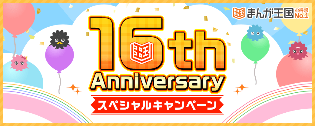 『まんが王国』は2006年のサービス開始以来、多くのお客さまに支えられ、このたび16周年を迎えました。日頃のご愛顧に感謝し、多くの方々がもっとお得に、より多くの魅力的な作品と出会えることを願って、特別なキャンペーンをご用意いたしました。