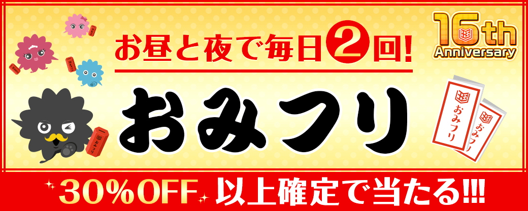毎日2回振れるクーポンくじが、期間中はさらにお得に!ハズレなし、30%OFF最大3回使えるクーポンが当たります。