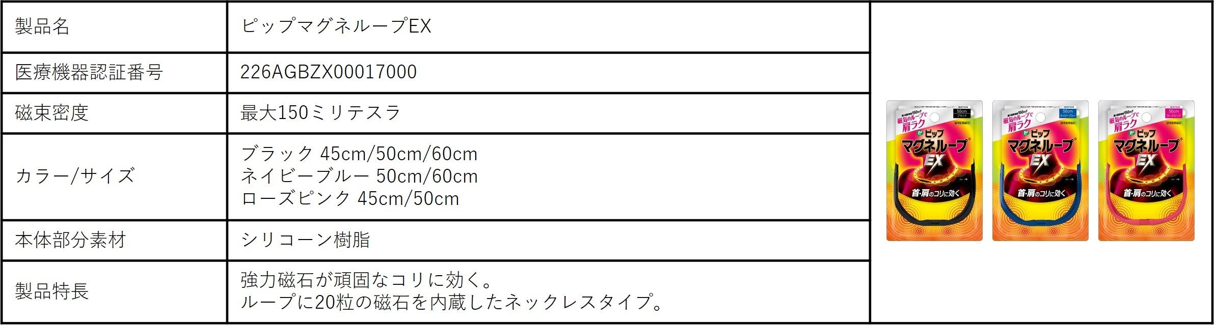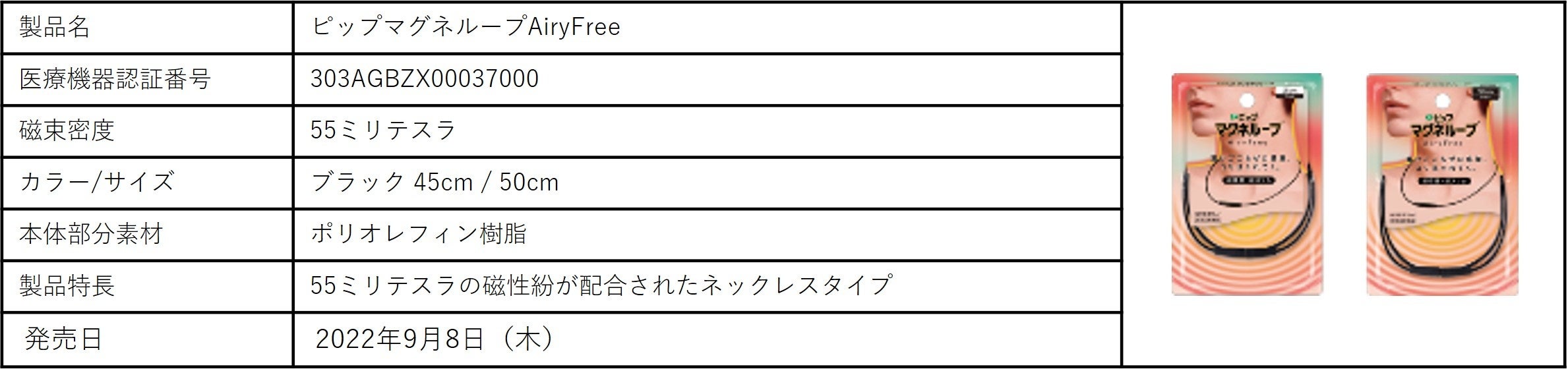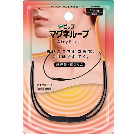 2022年9月8日に登場した「ピップマグネループ」シリーズの最軽量タイプ。超軽量&超スリムで”着けごこちゼロ感覚”でコリをほぐし続けます。見た目やループの重さに負担を感じている方におすすめです。