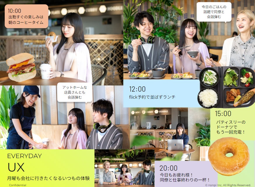 ノンピは、「社食業界」「ケータリング業界」のイメージを覆し、新たな変革を起こそうとしています。単なる受託企業ではなく、FOOD COMMUNICATION COMPANYを目指していることの認知を広げていくために、社員1人1人がノンピのレシピ(行動指針)を実践し、それらの行動が企業の成長へと繋がってくと考えています。“美味しい”は前提で、付加価値をつけた食空間そのものを企画して創り続けていきます。