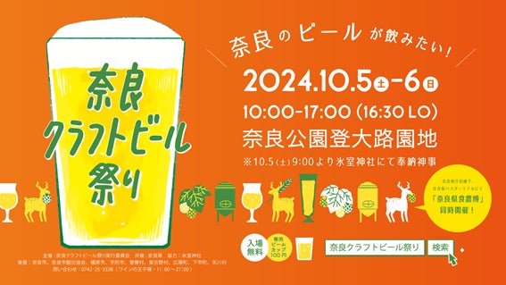 奈良クラフトビール祭り実行委員会は、2024年10月5日(土)、6日(日)の2日間、奈良公園登大路園地において、クラフトビールの祭典「奈良クラフトビール祭り」を今年も開催することを決定いたしました。奈良県内に所在する全てのクラフトビール醸造所と奈良県にゆかりのある県外の醸造所が参加いたします。