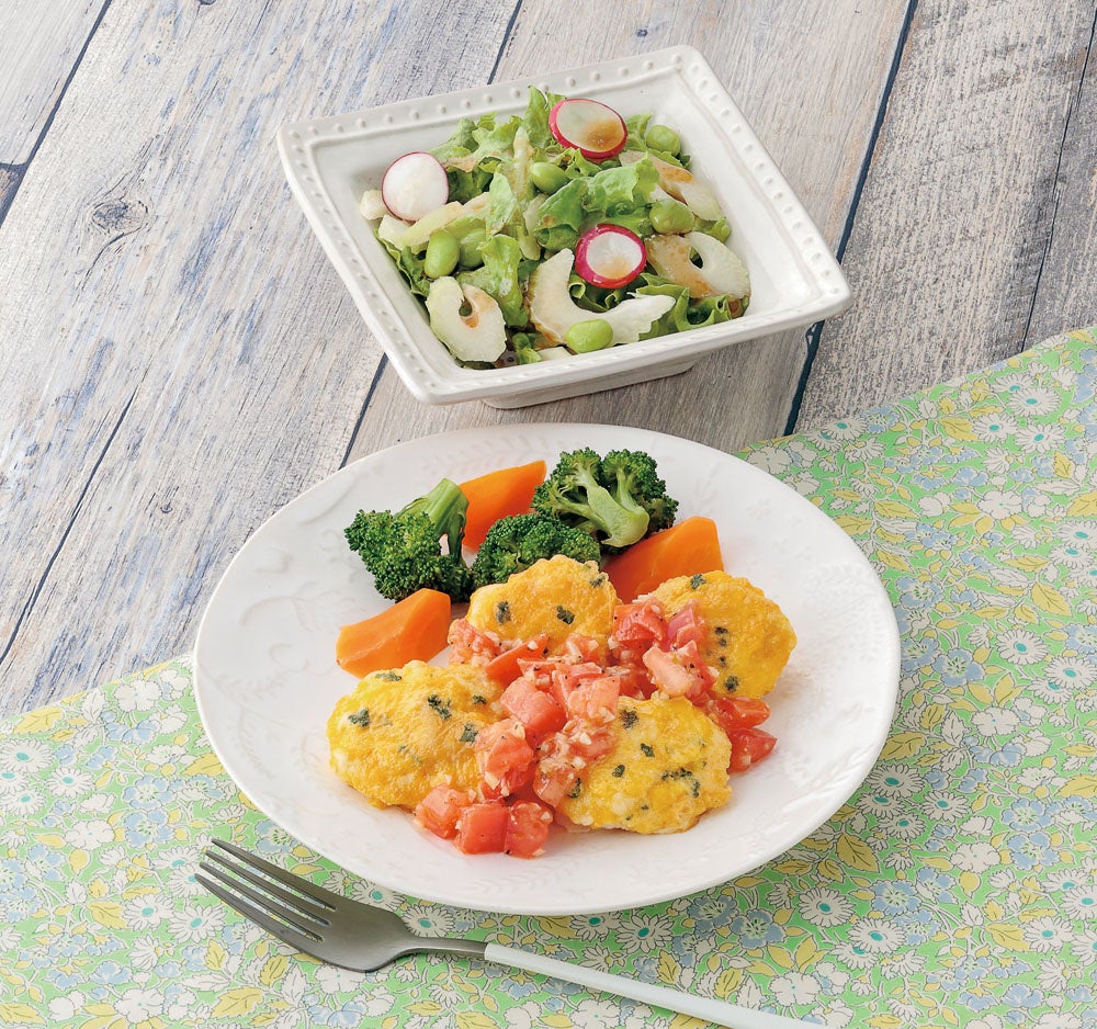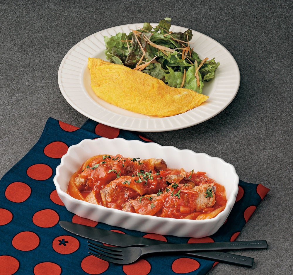 左より:バランス400コース6/17(月)『彩りチキンピカタ』、定番コース6/20(木)『たらのイタリア風トマト煮込み』、食彩コース6/22(土)『豚肉と茄子のインボルティーニ』